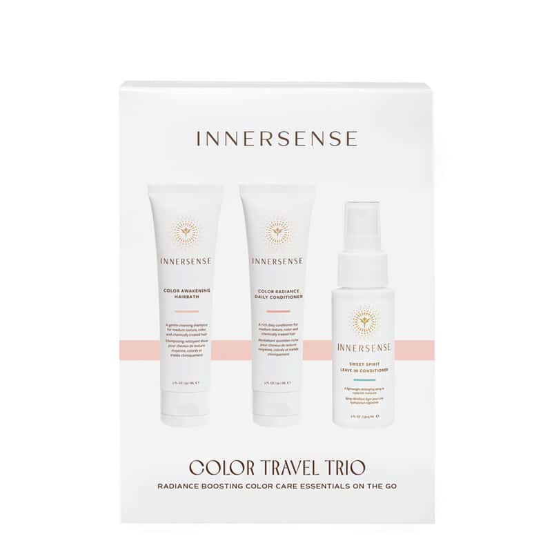 Med Innersense – Color Trio Collection får du en Color Awakening Hairbath, en Color Radiance Daily Conditioner og en Sweet Spirit Leave-In Conditioner. Alle produkterne kommer også i 59 ml. Produkterne i Color Trio Collection er med til at fugte håret og har god virkning på kemisk bearbejdet hår, men virker fint på alle hårtyper.